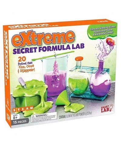 The SmartLab Extreme Secret Formula Lab will have kids mix household ingredients and the included glow-in-the-dark powder, then record their results in the included journal Suitable for ages 8 & up