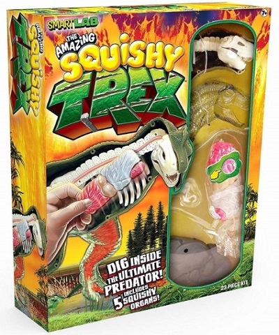 The Smart Lab the Amazing Squishy T-Rex features a 23-piece anatomically correct model of the mighty T-Rex with squishy skin and internal organs.