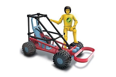 An enclosed Crash Cart has a removable roll cage, 2 types of bumpers and a safety harness. The dummy has with an electronic sensor that measures the force of the impact. Crash! Launch! Test! Change design! Test again! Customize the crash test car and don’t worry about crashing Jack again and again. The science toy comes complete with an activity booklet that tells children about laws of motion, principles of physics and engineering.