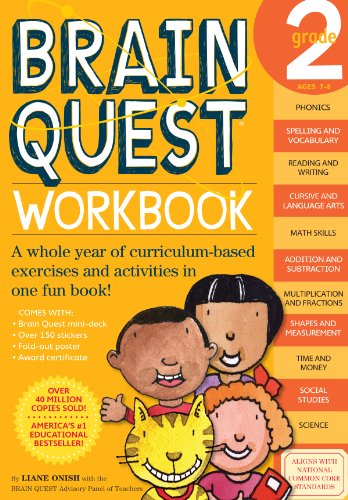 The ultimate 2nd-grade workbook, with hundreds of curriculum-based activities, exercises, and games in every subject! It's fun to be smart! Loved by kids, teacher approved, and parent trusted, Brain Quest 2nd Grade Workbook reviews and reinforces what kids are learning in the classroom in an instantly engaging, entertaining way. Each page is jam packed with hands-on activities and games covering building sentences, addition and subtraction, fractions, telling time, geography, science, and much, much more--with friendly illustrations throughout. Aligned with Common Core State Standards and expertly vetted by award-winning teachers, this workbook is designed to appeal to kids' natural curiosity, with interactive layouts and easy-to-follow explanations that take the intimidation out of learning. Plus, it's written to help parents follow along and explain key concepts for homework help! With colorful stickers, a fold-out poster, award certificate, and Brain Quest Mini Decks in the back. Also available: Summer Brain Quest Workbooks (Pre-K & K through Grades 5 & 6) and Brain Quest Decks (Pre-K through Grade 7).