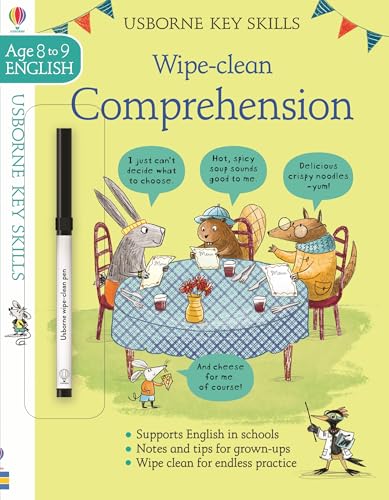 This friendly wipe-clean book is filled with comprehension-based activities that allow children to practise understanding, analysing and interpreting different kinds of writing. Part of the Usborne Key Skills series that supports the English lessons children learn at school. The wipe-clean pages offer endless practice, and answers and secret notes for grown-ups are at the back.