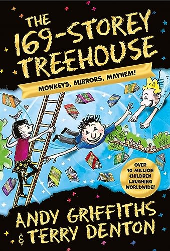 There are lots of laughs at every level in The 169-Storey Treehouse, from the worldwide bestselling Treehouse series by Andy Griffiths and Terry Denton. Andy and Terry have added thirteen new levels and built their biggest and most astonishing treehouse yet! It has everything they—and you—could wish for including: an electric pony stable, a Santa Land, a NOISY level, a kangaroo-riding range, a weather dome (where you can have whatever weather you want whenever you want it), an 100% edible gingerbread house and a potato-powered translation transmitter that allows you to talk to everything everywhere all at the same time. There’s also a hall of funhouse mirrors, which is the perfect place to hide from Mr Bunkoff who is trying to catch Andy, Terry and Jill in order to send them to SCHOOL. But Anti-Andy, Terrible Terry and Junkyard Jill – their trouble-making opposites – are trapped in one of the mirrors —and they want out. (Oh, and Mr Big Nose wants them to write their book … RIGHT NOW.) Can our heroes escape school, do battle with their doppelgängers AND meet their book deadline? Well, what are you waiting for? Come on up! Read the whole series: The 13-Storey Treehouse The 26-Storey Treehouse The 39-Storey Treehouse The 52-Storey Treehouse The 65-Storey Treehouse The 78-Storey Treehouse The 91-Storey Treehouse The 104-Storey Treehouse The 117-Storey Treehouse The 130-Storey Treehouse The 143-Storey Treehouse The 156-Storey Treehouse