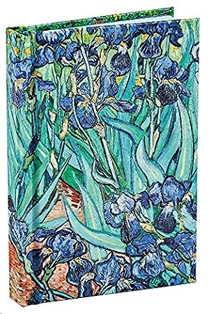 Van Gogh’s Irises, painted during his last year of life while residing at Saint Paul-de-Mausole asylum in Saint-Remy-de-Provence, France. Painting soothed his soul and this one shows the influence of his collection of Japanese wood block/ukiyo-e prints. Our Mini Notebooks are full colour hardcover pocket sized books featuring bright accents on the edges of the paper. The paper is lightly printed with a dot-grid, perfect for note taking, list making and doodling. 120 pages dot-grid paper sky-blue edge paper pad portable size 127 x 89mm. hardcover lay-flat binding smooth matte finish cover art We choose the best images from well-known classic and contemporary fine artists, plus talented emerging illustrators and designers from around the globe. Vincent van Gogh (1853-1890) had an artistic career lasting only ten years. However, in those years he left behind an astounding legacy of painting that has endured to this day. He was a mad genius and he poured that passion into the trembling energy of his paintings. His canvases are celebrations of humanity & earth, colour & texture.