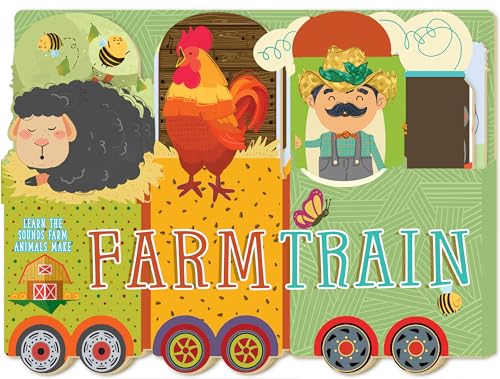 All aboard the farm train! Complete with tractor wheels, a happy farmer, and the loudest passengers you’ve ever heard, Farm Train is an adorable two-in-one board book that features brightly illustrated farm animals in every train car. The cow says moo moo, the sheep says baa baa, and the goose says honk honk from the moment the train leaves the station. Farm Train can be read page-by-page as a lap book or be unfolded into a 56″ train! (Perfect for play time or room decor!) A handy velcro clasp keeps everything snugly shut when reading time is over.