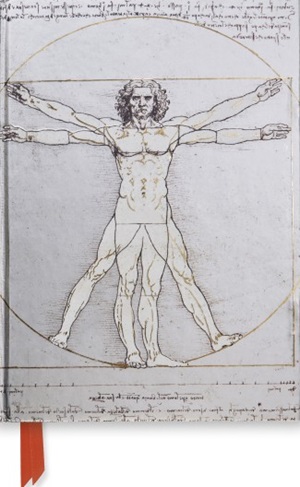 Part of a series of exciting and luxurious Flame Tree Notebooks. Combining high-quality production with magnificent fine art, the covers are printed on foil in five colours, embossed then foil stamped. And they're powerfully practical: a pocket at the back for receipts and scraps, two bookmarks and a solid magnetic side flap. These are perfect for personal use and make a dazzling gift. This example is based on 'The Vitruvian Man', c. 1492 by Leonardo da Vinci (1452–1519), and printed on silver.