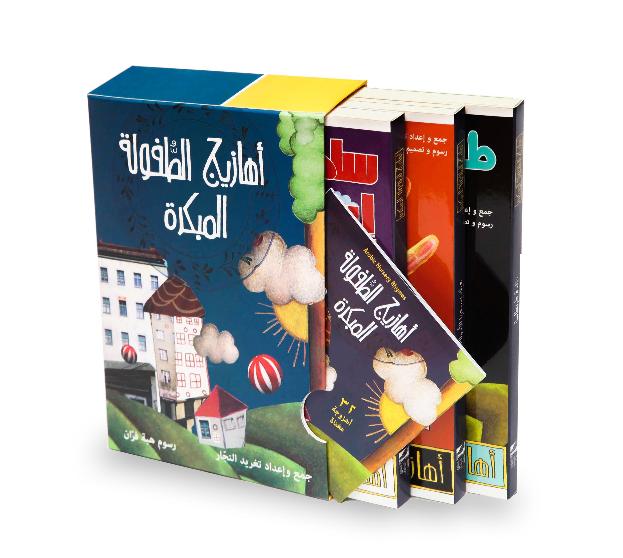 "مجموعة أهازيج الطفولة المبكرة: مجموعة من 32 أهزوجة معروفة في مناطق مختلفة من العالم العربي. صنفت هذه الأهازيج إلى فئات وفقًا لموضوعها وقُدّمت على شكل ثلاث كتب لوحية مصورة إضافة إلى قرص صوتي. عناوين الكتب في هذه المجموعة: سلحفتي اسمها نهلة (أهازيج عن الحيوانات)، طاسة ترانطاسة (أهازيج متنوعة)، هيك بيسبحو الأسماك (أهازيج مع الحركات باليد). تحتوي المجموعة على قرص صوتي كي يستمتع الأهل مع أطفالهم بغناء هذه الأهازيج الرائعة.